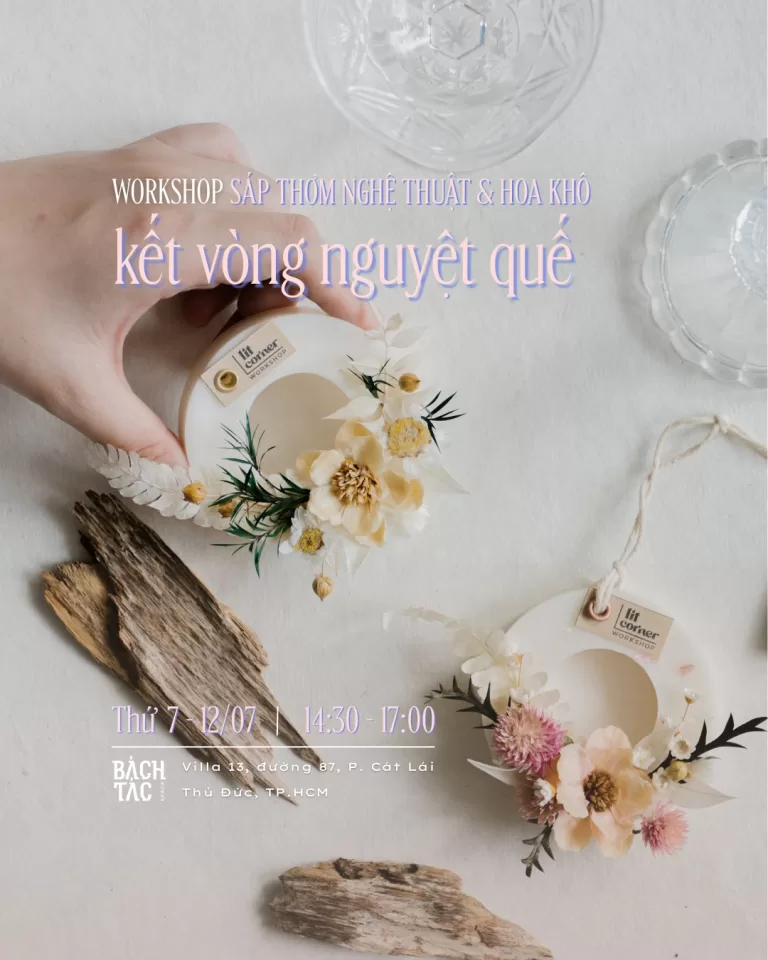 Xem thêmBạn yêu vẻ đẹp mong manh của hoa khô, mê mẩn hương thơm tinh tế và những khoảnh khắc sáng tạo, “Kết Vòng Nguyệt Quế” là lời mời dành cho bạn. Đây sẽ buổi workshop nơi hương, sắc và...